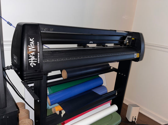 CUTS OUT DESIGNS FOR DIFFERENT VINYL SUCH AS 3D BRICK PRINT, SUEDE FLOCK, AND REFLECTIVE MATERIAL.
